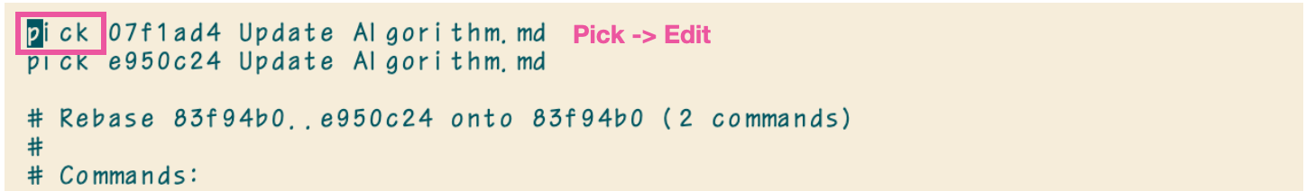실제 입력 : git rebase -i 83f94b07a663bcaf5ddd355f92830fe4d9